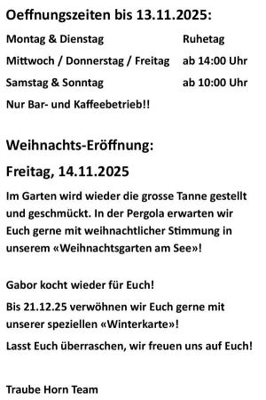 Wir freuen uns, Sie in der Traube Horn begrüssen zu dürfen. Es erwartet Sie ein aufgestelltes Team in einer einladenden Umgebung direkt am Horner Hafen.